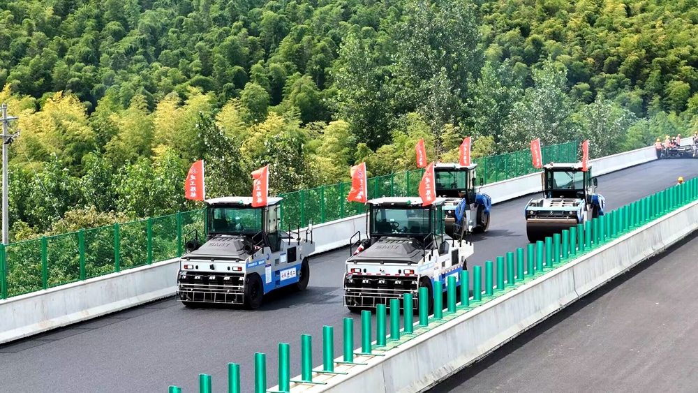 宣涇高速是安徽省五縱十橫高速公路網(wǎng)重要組成部分。近日,在安徽建工路橋承建的宣涇高速一期03標(biāo)項目施工現(xiàn)場,一臺大型攤鋪機(jī)正將瀝青均勻攤鋪在道路上,多臺壓路機(jī)跟在后面,有序碾壓。走近施工設(shè)備,卻發(fā)現(xiàn)駕駛室空無一人。原來,這是在進(jìn)行瀝青無人智能攤鋪施工。