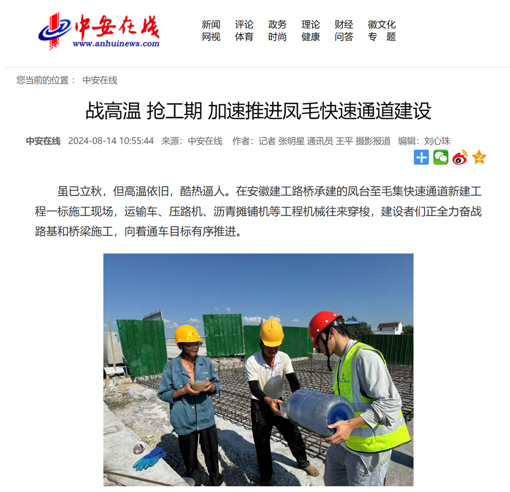 【名媒聚焦】中安在線、淮河早報:戰(zhàn)高溫 搶工期 加速推進鳳毛快速通道建設