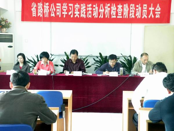 會上,陳書記在動員講話里首先全面回顧總結(jié)了學(xué)習(xí)實踐活動第一階段的情況。陳書記從四個方面總結(jié)了第一階段的學(xué)習(xí)調(diào)研情況:一、認(rèn)真籌備,積極動員。公司黨委迅速行動,及時召開了黨委會議,成立了領(lǐng)導(dǎo)小組及其辦公室,研究制定了《安徽省路橋公司開展深入學(xué)習(xí)實踐科學(xué)發(fā)展觀活動實施方案》等指導(dǎo)性文件,并于3月24日上午,召開了學(xué)習(xí)實踐科學(xué)發(fā)展觀活動動員大會。二、創(chuàng)新方式、強(qiáng)化學(xué)習(xí)。學(xué)習(xí)實踐活動動員大會后,公司學(xué)習(xí)實踐活動領(lǐng)導(dǎo)小組迅速組織實施第一階段的學(xué)習(xí)實踐活動。一是組織所屬各支部書記就如何組織開展學(xué)習(xí)實踐科學(xué)發(fā)展觀活動進(jìn)行培訓(xùn);二是以求真務(wù)實的作風(fēng)推動學(xué)習(xí)實踐活動深入開展,及時在網(wǎng)上開辟了學(xué)習(xí)實踐科學(xué)發(fā)展觀專欄,并利用公司內(nèi)刊《路橋信息》廣為宣傳,為實踐活動營造良好的輿論氛圍;三是將《科學(xué)發(fā)展觀重要論述摘編》、《毛澤東、鄧小平、 江澤民、論科學(xué)發(fā)展》發(fā)至每位黨員手上;四是強(qiáng)化學(xué)習(xí),堅持學(xué)習(xí)規(guī)定內(nèi)容與自選內(nèi)容相結(jié)合、集中學(xué)習(xí)與自學(xué)相結(jié)合、學(xué)習(xí)理論與指導(dǎo)實踐相結(jié)合,正確處理工學(xué)矛盾,創(chuàng)新學(xué)習(xí)方式,確保學(xué)習(xí)質(zhì)量。三、深入調(diào)研、解放思想。公司黨委把開展調(diào)研作為掌握實情、發(fā)現(xiàn)問題、破解難題的重要基礎(chǔ),把解放思想大討論作為對學(xué)習(xí)成果的檢驗。一是集思廣益,確定調(diào)研課題,領(lǐng)導(dǎo)班子在廣泛征求意見的基礎(chǔ)上,確定了9個調(diào)研課題和課題組成員;二是深入基層,廣泛調(diào)研,公司領(lǐng)導(dǎo)班子成員深入到聯(lián)系點開展調(diào)研,問計于基層,問計于員工,廣泛聽取員工對公司科學(xué)發(fā)展的意見和建議,進(jìn)一步摸清了問題,理清了思路。四、突出實踐特色,聯(lián)系實際到位。在抓好學(xué)習(xí)的同時,堅持理論聯(lián)系實踐,把學(xué)習(xí)實踐活動和生產(chǎn)經(jīng)營緊密結(jié)合起來。公司領(lǐng)導(dǎo)班子分別就外協(xié)隊伍的管理與控制、人力資源管理、項目質(zhì)量管理、市政市場戰(zhàn)略定位、項目財務(wù)管理、經(jīng)營管理等方面的問題進(jìn)行了深入調(diào)研,并提出了可行的解決方案,形成了有質(zhì)量的調(diào)研報告。各支部、各項目黨小組都始終把學(xué)習(xí)實踐活動同生產(chǎn)經(jīng)營和企業(yè)管理緊密聯(lián)系起來,做到相互促進(jìn)。陳書記指出通過學(xué)習(xí)實踐活動的開展,公司領(lǐng)導(dǎo)謀劃科學(xué)發(fā)展的決心、信心都更加堅定,公司上下的凝聚力、干勁大大增強(qiáng),生產(chǎn)經(jīng)營形勢良好。截至到目前,公司承攬工程6.88億,同比增長26.7%。同時陳書記還指出了第一階段學(xué)習(xí)實踐活動中存在的一些問題。接著陳書記對如何做好分析檢查階段的工作提了兩點意見。一、要認(rèn)真抓好三個環(huán)節(jié)。陳書記對召開領(lǐng)導(dǎo)班子專題民主生活會、形成領(lǐng)導(dǎo)班子分析檢查報告、組織群眾評議三個環(huán)節(jié)提出了具體要求;二、要始終堅持六個貫穿始終,一要把活動主題貫穿始終,二要把理論學(xué)習(xí)貫穿始終,三要把實踐特色貫穿始終,四要把邊查邊改貫穿始終,五要把嚴(yán)格要求貫穿始終,六要把“兩不誤、兩促進(jìn)”貫穿始終。