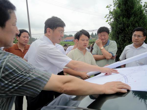 2010年7月15號上午,省交通廳副廳長羅寧、基建處長章厚忠、安徽省公路勘察設計院副院長王耀明、省高速公路控股集團有限公司錢東升處長及副處長兼宣寧高速項目辦方昱主任、宣城市交通局局長牛傳勇和副局長梁世華,以及區(qū)高速公路指揮部、孫埠鎮(zhèn)相關負責人員,在我省路橋公司副總經(jīng)理盛明宏、宣寧02標項目經(jīng)理張慶書的陪同下,蒞臨宣寧高速公路02標項目現(xiàn)場,對K9+314支線上跨橋方案變更事宜進行了現(xiàn)場會議討論。