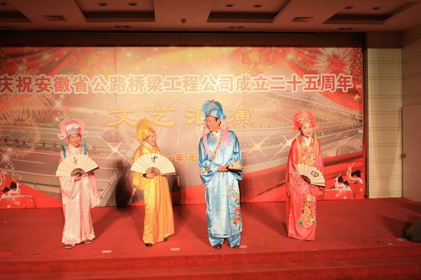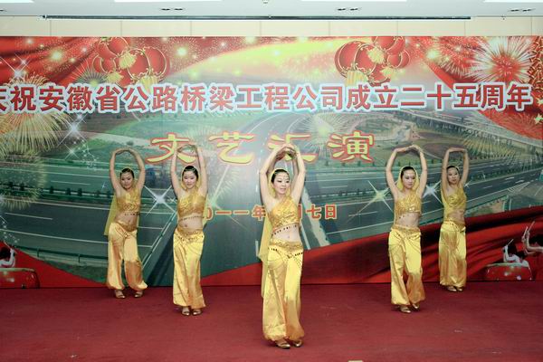 由環(huán)通公司表演的鼓樂(lè)《榮耀之光》將匯演氣氛充分展開(kāi),在激昂的鼓聲中全體員工看到了過(guò)去的榮耀,同時(shí)也看到了未來(lái)安徽路橋的榮耀之光。隨后的路面公司男聲獨(dú)唱《想家的時(shí)候》表達(dá)了路橋人舍小家為大家的“路橋情”?,F(xiàn)代舞《nobody》將歡快的舞曲、嫵媚動(dòng)感的舞蹈結(jié)合在一起,展示出路橋青年人可愛(ài)的一面。四分公司表演的三句半·路橋雜談——《四大才子》,不時(shí)讓觀眾捧腹大笑。男聲組合唱《80、90的歌》用美妙的歌聲征服了觀眾。詩(shī)朗誦《安徽路橋人之歌》結(jié)合湖北宜巴項(xiàng)目抗洪救災(zāi)的事跡,歌頌了路橋人勤奮苦干的風(fēng)采。公司機(jī)關(guān)的美麗姑娘攜手獻(xiàn)上了神秘充滿愛(ài)的《印度舞》,將觀眾帶入美妙高雅的民族舞蹈藝術(shù)殿堂,體現(xiàn)高尚的藝術(shù)品位和追求。橋梁公司年輕人表演了小品《路橋人的節(jié)目》,展示了路橋員工如何開(kāi)動(dòng)腦筋,為文藝匯演獻(xiàn)上最好的節(jié)目……