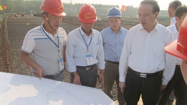 張祥安一行先后檢查了滁馬03標(biāo)洪武路大橋和滁州南互通2#橋施工現(xiàn)場,對建設(shè)情況給予了高度評價。他指出,滁馬高速工期緊,難度大,取得這樣的成績很不容易,同時也要求施工單位在抓好工程建設(shè)的同時,抓實、抓好施工安全工作,確保萬無一失。最后,張祥安勉勵項目全體建設(shè)者們,要抓住機會,再接再厲,創(chuàng)造更好的業(yè)績。