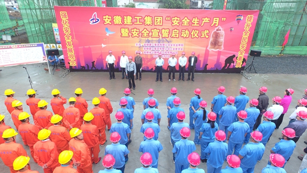 在集團(tuán)公司工會(huì)主席徐曉光的帶領(lǐng)下,所屬各單位領(lǐng)導(dǎo)、安全管理人員,郎溪路項(xiàng)目全體管理人員及一線工人約200人舉起右手,鄭重宣誓:“我是一名安徽建工人,我鄭重宣誓,時(shí)刻注意安全,遵守安全法規(guī)。履行安全職責(zé),提高安全技能。杜絕三違現(xiàn)象,保證四不傷害。強(qiáng)化紅線意識(shí),促進(jìn)安全發(fā)展。為了家人幸福、企業(yè)發(fā)展,誓做建工‘安全人’”。莊嚴(yán)的誓詞久久回蕩在項(xiàng)目現(xiàn)場,更加堅(jiān)定了全體建工人“強(qiáng)化紅線意識(shí),促進(jìn)安全發(fā)展”的信心和決心。