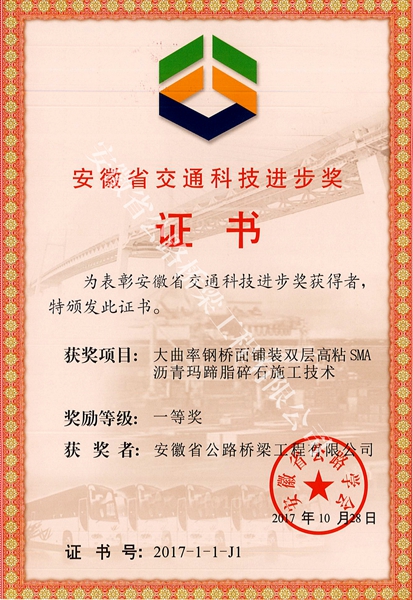 近年來,公司積極實施創(chuàng)新驅(qū)動發(fā)展戰(zhàn)略,充分依托省級技術中心,重點立足新設備、新材料、新工藝運用,大力推進科技創(chuàng)新,持續(xù)加強科技成果轉(zhuǎn)化,以科技創(chuàng)新助推企業(yè)轉(zhuǎn)型發(fā)展、跨越發(fā)展、高效發(fā)展,取得了良好成績。此次兩項成果榮獲省公路學會交通科技進步獎一等獎,充分體現(xiàn)了在公路工程特級資質(zhì)新發(fā)展平臺上公司科技創(chuàng)新實力的進一步增強。