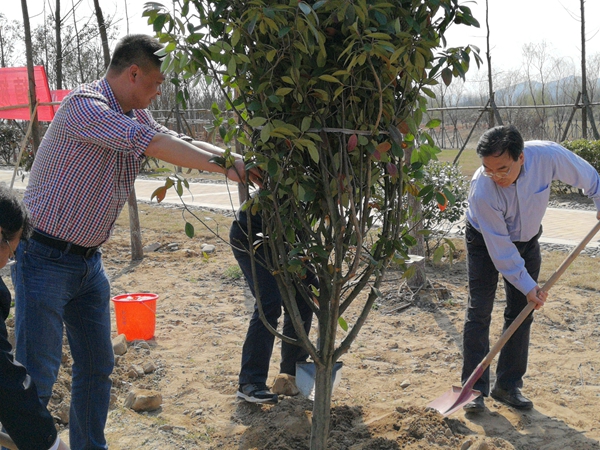 在植樹活動(dòng)現(xiàn)場,信長星與項(xiàng)目負(fù)責(zé)人共同植下第一棵樹,同時(shí)給大家講解了一些植樹的技巧和注意事項(xiàng)。