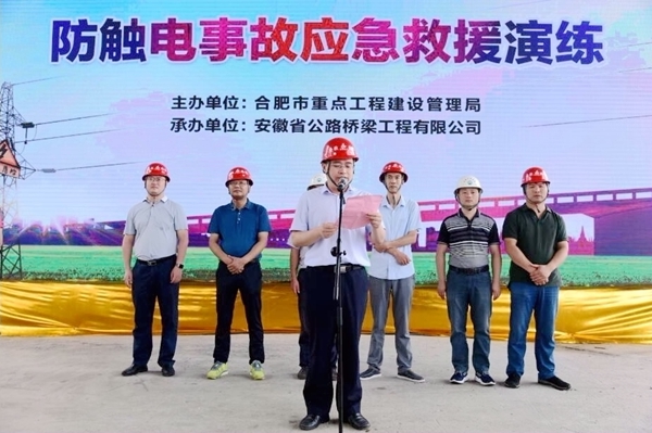 7月1日,由合肥市重點(diǎn)局主辦,公司承辦的防觸電事故應(yīng)急救援演練在阜陽(yáng)北路項(xiàng)目成功舉辦。合肥市建委黨委副書記、副主任陳傳東,長(zhǎng)豐縣副縣長(zhǎng)王健,市重點(diǎn)局副局長(zhǎng)鄭浩,公司黨委委員、副總經(jīng)理錢申春到場(chǎng)觀摩指導(dǎo)。