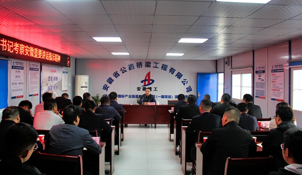 在全省上下深入學(xué)習(xí)宣傳貫徹習(xí)近平總書記考察安徽重要講話指示精神之際,按照集團(tuán)黨委統(tǒng)一部署要求,結(jié)合領(lǐng)導(dǎo)班子成員黨支部工作聯(lián)系點(diǎn)制度,10月16日下午,公司黨委副書記、總經(jīng)理錢申春深入道路分公司壽縣新橋產(chǎn)業(yè)園道路擴(kuò)展工程項(xiàng)目部宣講習(xí)近平總書記考察安徽重要講話指示精神。他強(qiáng)調(diào),要充分認(rèn)識習(xí)近平總書記考察安徽重要講話指示精神的重大意義,推動學(xué)習(xí)宣傳貫徹工作走深走實(shí),確保習(xí)近平總書記重要講話精神在項(xiàng)目一線得到全面貫徹落實(shí),進(jìn)而轉(zhuǎn)化為推動項(xiàng)目生產(chǎn)經(jīng)營管理的強(qiáng)大動力和生動實(shí)踐。
