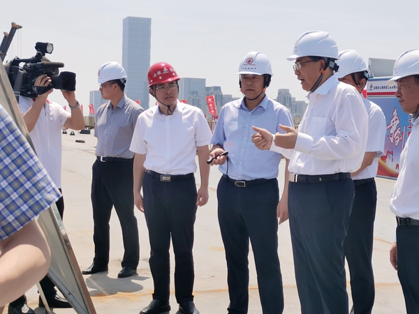 在項(xiàng)目主線橋鋼箱梁施工現(xiàn)場,李錦斌聽取了公司黨委書記、董事長錢申春關(guān)于項(xiàng)目概況、施工工藝和施工進(jìn)度的匯報(bào),仔細(xì)詢問了項(xiàng)目風(fēng)險(xiǎn)隱患識別、風(fēng)險(xiǎn)防范舉措、如何保障安全施工等工作開展情況,對項(xiàng)目的安全生產(chǎn)工作表示肯定。李錦斌再三叮囑,要堅(jiān)持綜合管控、分類治理、壓實(shí)責(zé)任、全面覆蓋,做到排查精準(zhǔn)、管理精細(xì)、措施精當(dāng),有效化解各類安全生產(chǎn)風(fēng)險(xiǎn),真正實(shí)現(xiàn)技術(shù)過關(guān)、施工過關(guān)、質(zhì)量過關(guān)、安全過關(guān)。