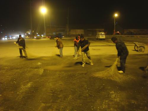 上午8點許,經(jīng)過7日一夜的交口清理,市政北二環(huán)開始有計劃有步驟的進行攤鋪交口橋面部分的施工工作。施工過程中,項目部克服了交通不封閉等制約因素,在確保安全生產(chǎn)的狀態(tài)下,對交口橋面的防水層和交口兩側(cè)的瀝青層進行有序開展、同時施工。