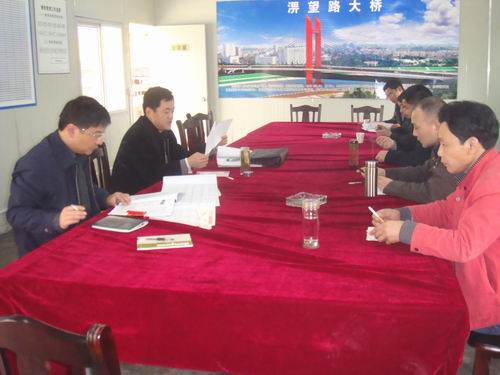 戴總一行深入施工一線,實(shí)地察看了大橋的建設(shè)情況,與現(xiàn)場(chǎng)技術(shù)人員和施工人員進(jìn)行了親切的溝通交流。隨后,戴總一行在項(xiàng)目部會(huì)議室召開了座談會(huì),就淠望路大橋施工方案、施工工序進(jìn)行了詳細(xì)的剖析,并提出了具有建設(shè)性的指導(dǎo)意見。