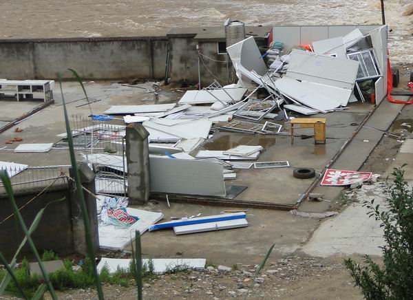 由于項(xiàng)目部及時(shí)通知人員撤離,所以沒有造成人員傷亡。災(zāi)情發(fā)生后,項(xiàng)目經(jīng)理王遠(yuǎn)勝帶領(lǐng)安全部部長(zhǎng)萬和國(guó)趕赴現(xiàn)場(chǎng)了解損失情況。王經(jīng)理組織工區(qū)長(zhǎng)、班組長(zhǎng)召開現(xiàn)場(chǎng)會(huì)議,要求災(zāi)情面前“人命大于天”,無論是面對(duì)洪水、塌方還是龍卷風(fēng),首先要確保人員安全;其次對(duì)山區(qū)的惡劣天氣和自然災(zāi)害的危害性要估計(jì)得更加充分,安全工作要更加仔細(xì);最后要求大家鼓足信心,清理現(xiàn)場(chǎng)、修復(fù)損壞設(shè)備,爭(zhēng)取七天內(nèi)恢復(fù)施工。