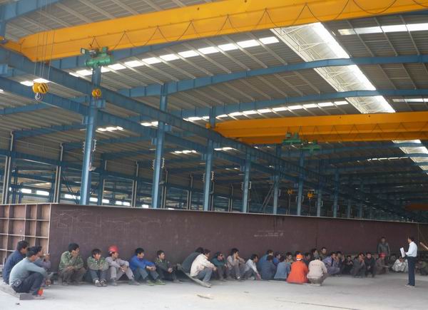 我項(xiàng)目部鋼箱梁預(yù)制場(chǎng)位于長(zhǎng)豐縣五山鎮(zhèn),距離項(xiàng)目部約43公里。項(xiàng)目部安全管理人員驅(qū)車一個(gè)半小時(shí)趕到了梁廠。中午12:50,梁廠職工70余人在生產(chǎn)車間接受交底。這次安全交底的內(nèi)容主要有崗位教育以及鋼箱梁預(yù)制技術(shù)交底。整個(gè)交底時(shí)間持續(xù)近一個(gè)半小時(shí)。交底過(guò)程中,項(xiàng)目部安全管理人員采用案例與安全規(guī)范要求相結(jié)合的方式,并穿插形象的事例,希望現(xiàn)場(chǎng)職工“鎖好安全的大門(mén),嚴(yán)防事故的小偷”、“不能把安全當(dāng)做抽煙,告訴你抽煙有害健康,你就在繼續(xù)抽煙了”。現(xiàn)場(chǎng)職工認(rèn)真聽(tīng)講、積極互動(dòng),在反饋?zhàn)陨砀惺艿耐瑫r(shí)接受了安全教育。交底結(jié)束后,現(xiàn)場(chǎng)工人認(rèn)真答填了安全教育試卷。