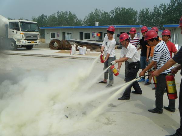 鳳陽縣消防支隊派出業(yè)務骨干進行培訓和現(xiàn)場指導演練,重點對施工現(xiàn)場安全的隱患點做了詳細分析,對消防滅火器材的種類、型號、使用方法進行了講解和現(xiàn)場指導。本次消防演練由技術(shù)指揮組、搶救組組成。參加培訓人員在掌握基本常識基礎上對施工現(xiàn)場所配備的干粉滅火器進行實際操作,進行滅火演練。